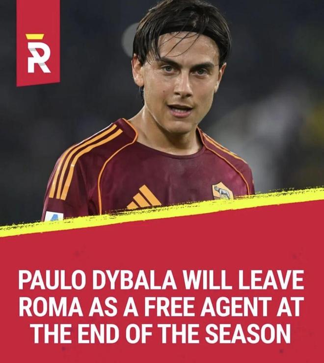 近日,据意大利媒体的报道,迪巴拉将会在本赛季结束后自由身离开罗马。