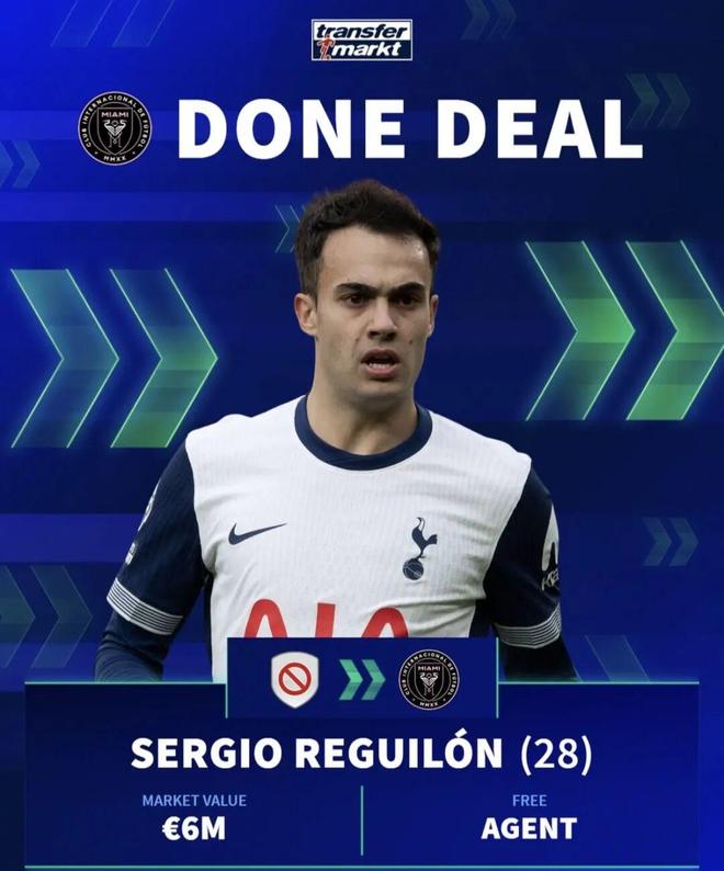 据悉,雷吉隆的注册名额将占用球队的国际球员名额。迈阿密国际同时确认,雷吉隆将身披球队的3号球衣,这位28岁的后卫此前曾在西班牙国家队、热刺、皇马卡斯蒂亚身披过3号战袍。